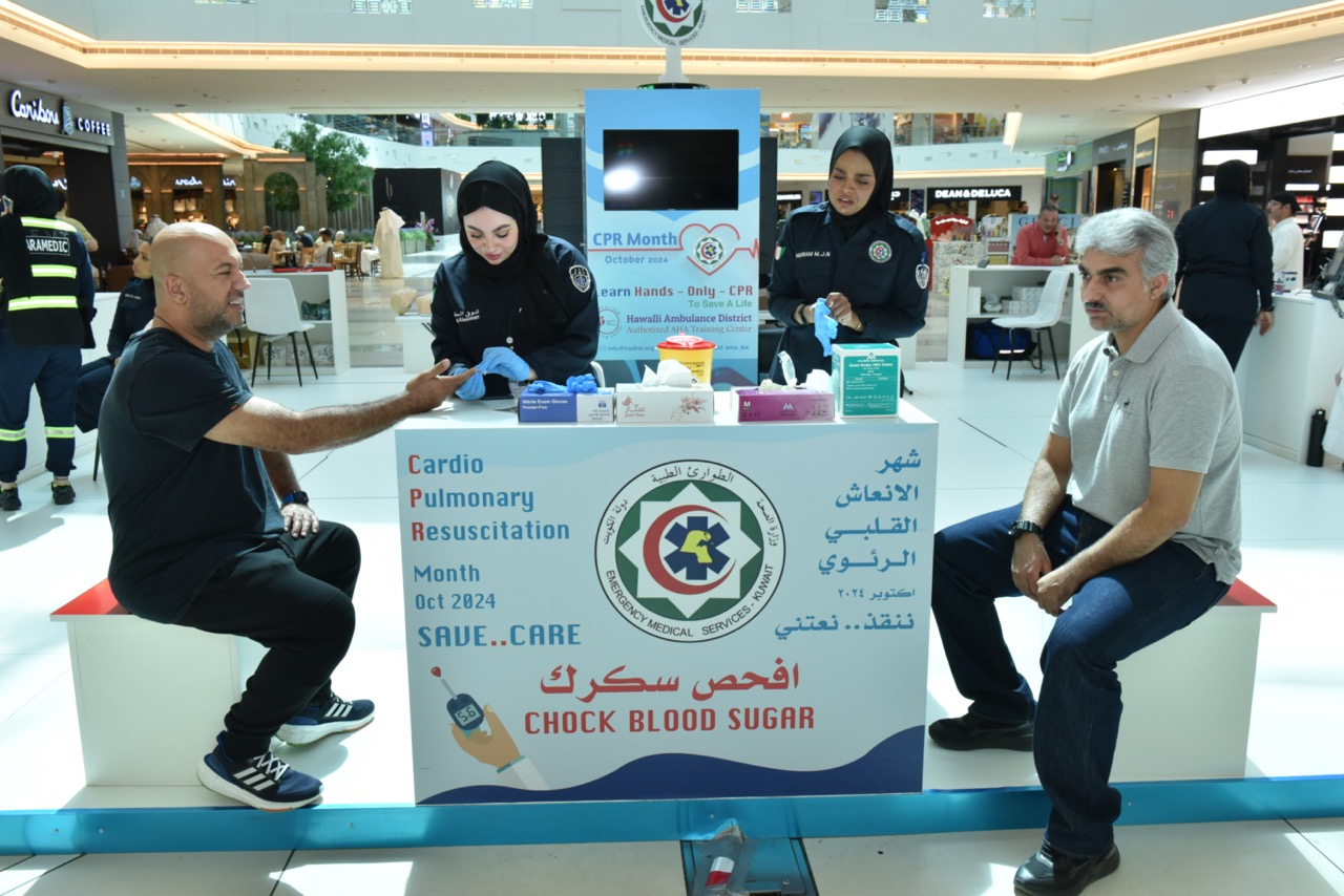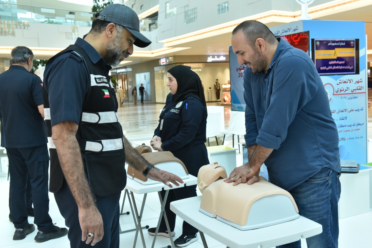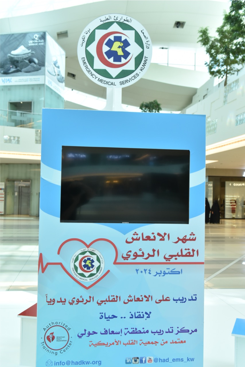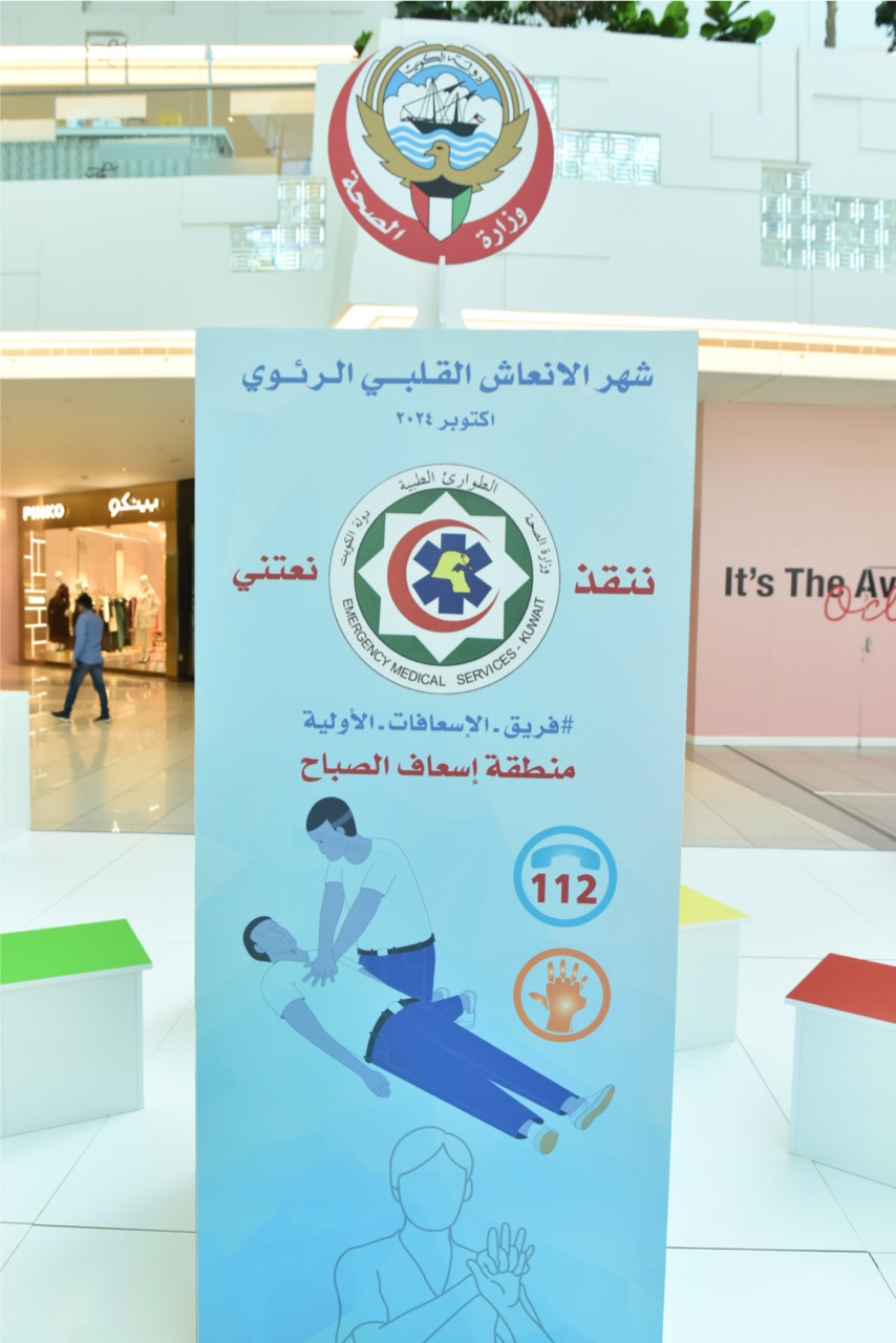 – بمناسبة اعتماد شهر أكتوبر تثقيف الجمهور الكريم بمهارة الإنعاش القلبي والرئوي ، دشنت إدارة الطوارئ الطبية حملة لمرتادي زوار مجمع الافنيوز بعنوان # تعلم_تسلم # ننقذ_ونعتني ضمن سلسة فعاليات في مختلف المجمعات التجارية في محافظات الكويت المختلفة لنشر ثقافه الاسعاف الاولي على مدار الشهر.